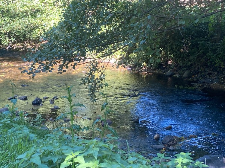 je me suis souvenue de tous ces tableaux de peintres impressionnistes de déjeuner sur l’herbe ou au bord de l’eau ( on ne disait pas pique-nique à l’époque) en voyant la beauté de ce cours d’eau au milieu des arbres encore feuillus…